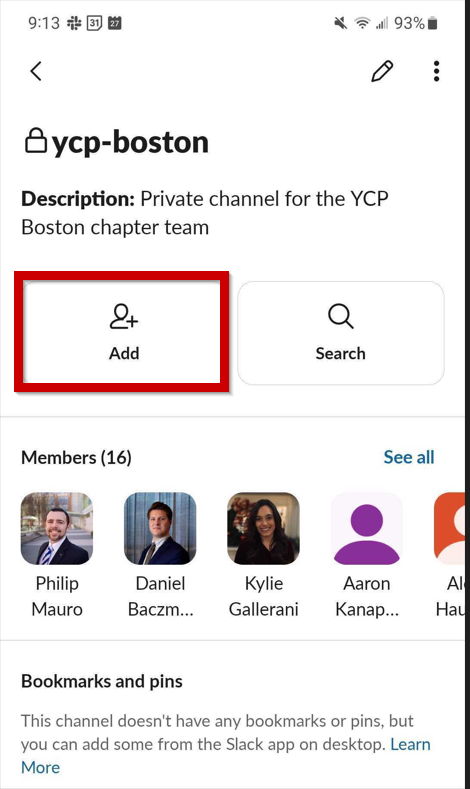 To add someone on Slack, navigate to the right hand corner of the channel if you are on a laptop/desktop. You should see a count and some faces for profiles in the corner. Click on this.