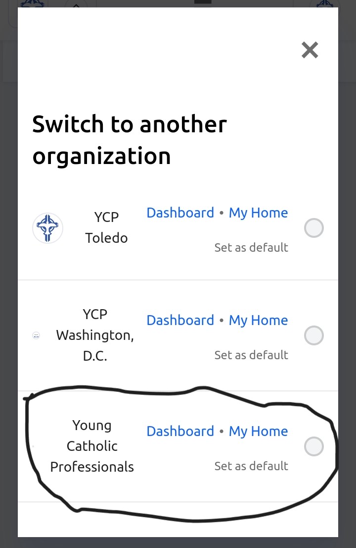 On the next screen, select 'Young Catholic Professionals':