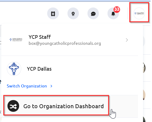 To see your event revenue transaction history and payout to your bank account, you'll want to access the Paygage Dashboard. To do so, login to Glue Up and navigate to your chapter's organizational dashboard if needed.