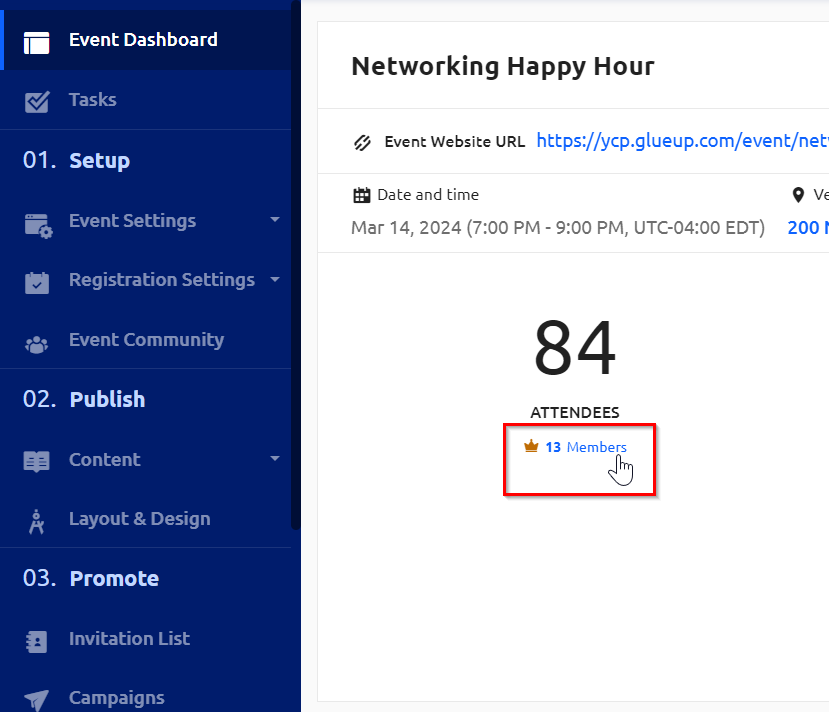 In your Event dashboard in Glue Up, you can see who is a member versus a non-member at your event. This article reviews the steps on how to do so. Additionally, we'll review how to see event history for a particular member or contact.